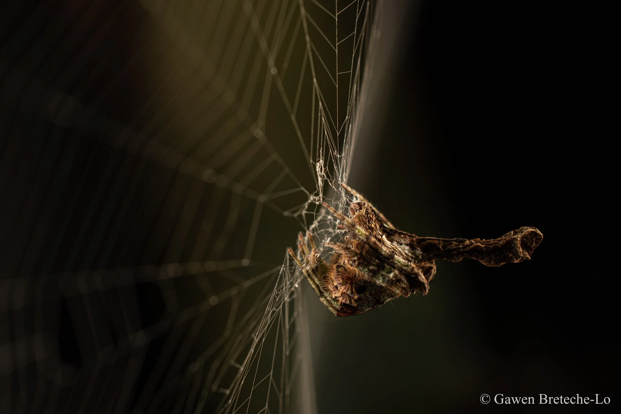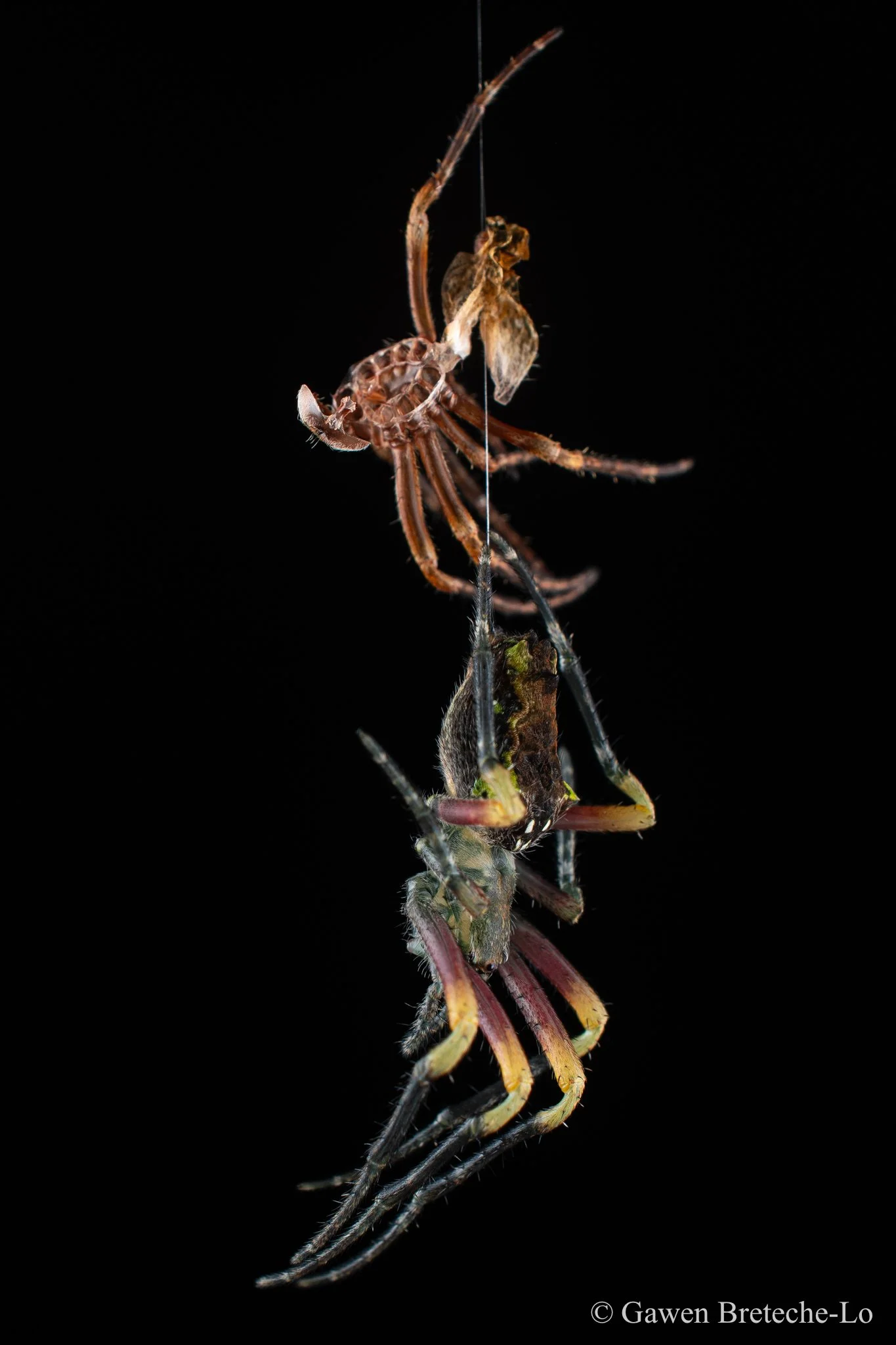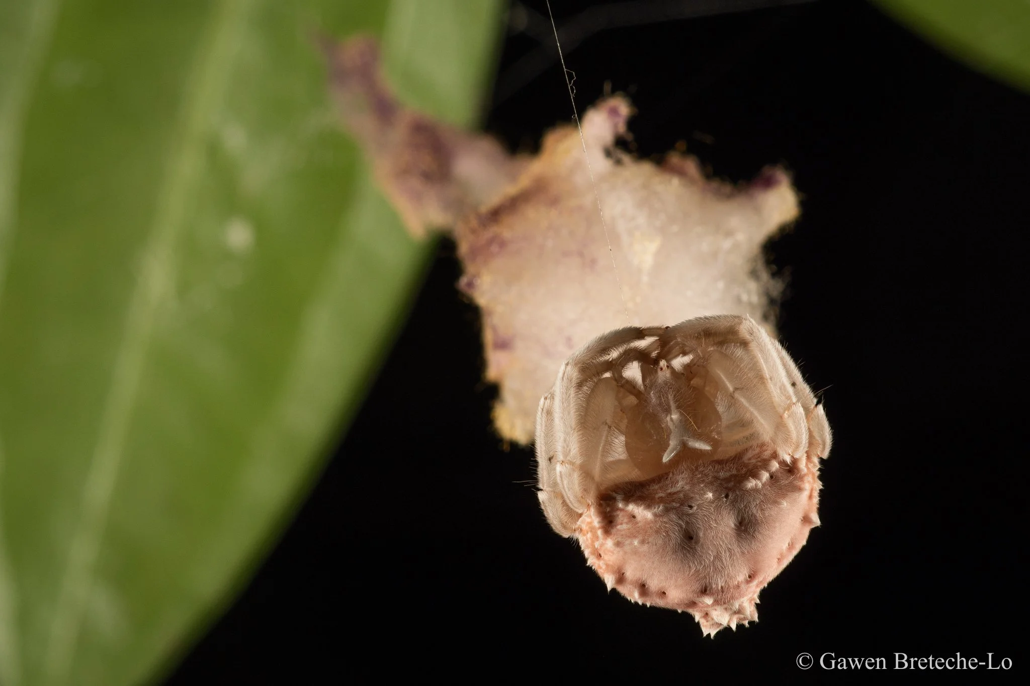 Bolas Spider under egg sac (Ordgarius sp.), Sarawak, Borneo 2023