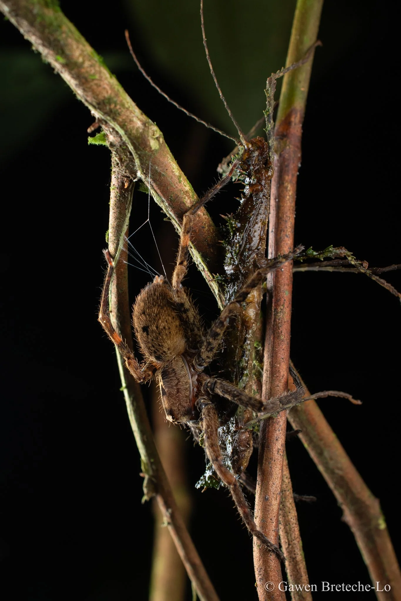 Spider with stick insect prey (Araneae), Upper Amazon, Ecuador 2025