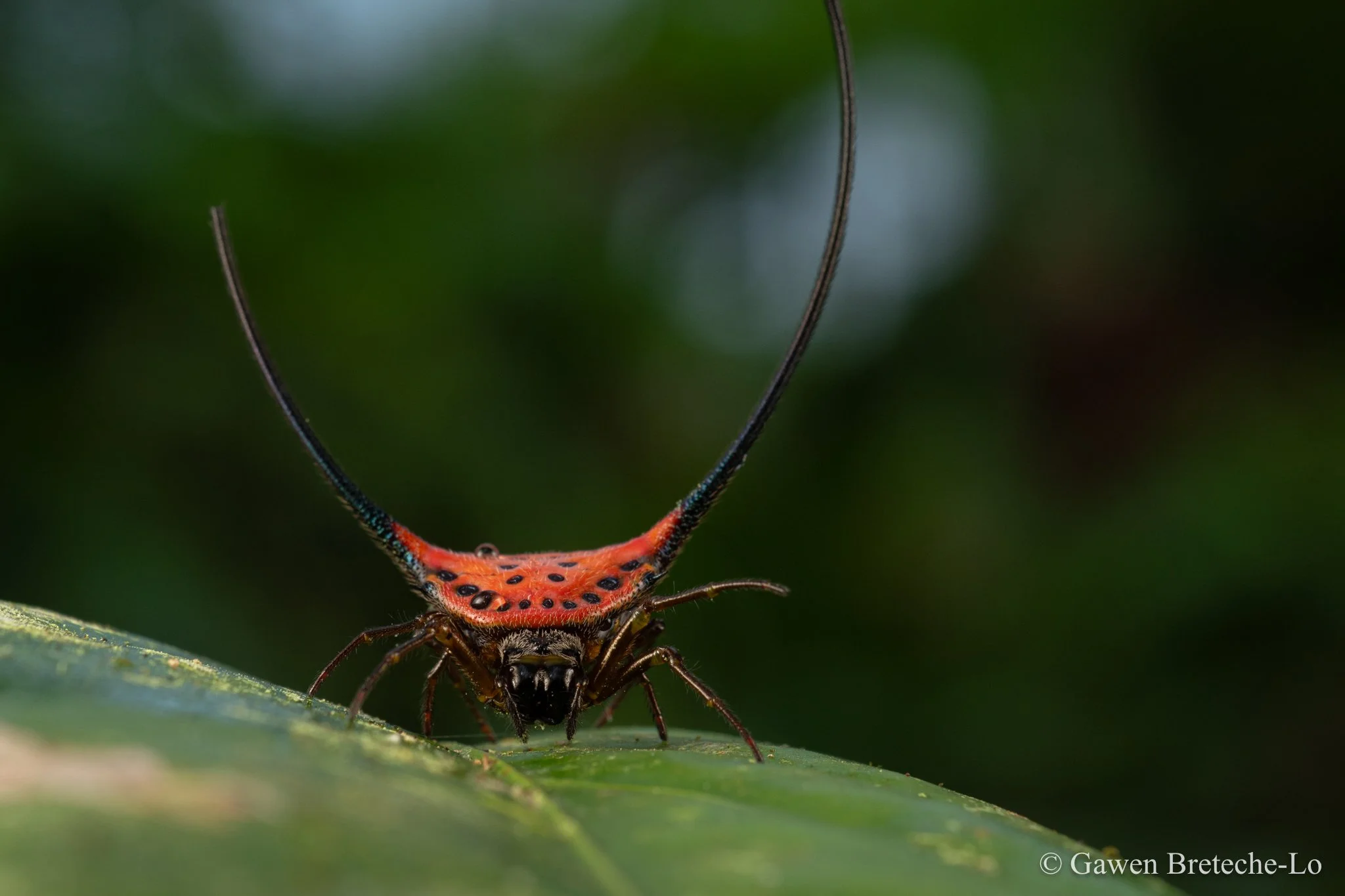 Long-horned Orbweaver (Macracantha arcuata), Sabah, Borneo 2024