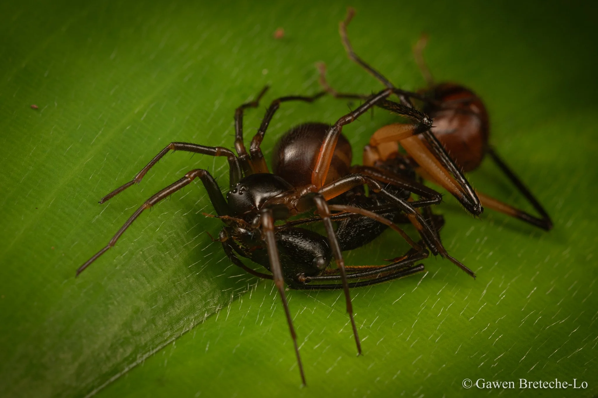 Ant-mimic Spider feeding on Giant Forest Ant (Mallinella sp.), Sarawak, Borneo 2024