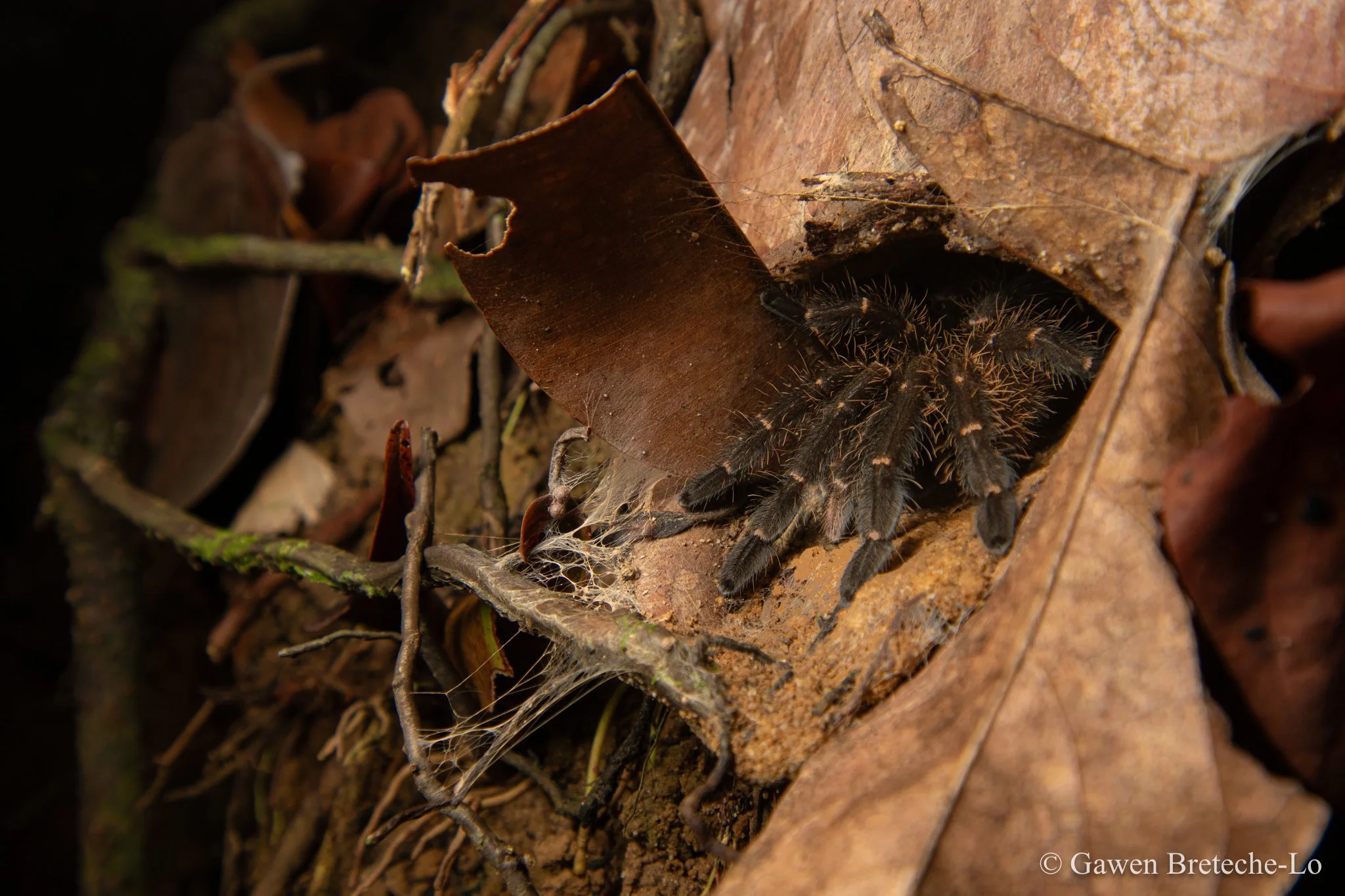 Tarantula guarding egg sac (Theraphosidae), Upper Amazon, Ecuador 2025
