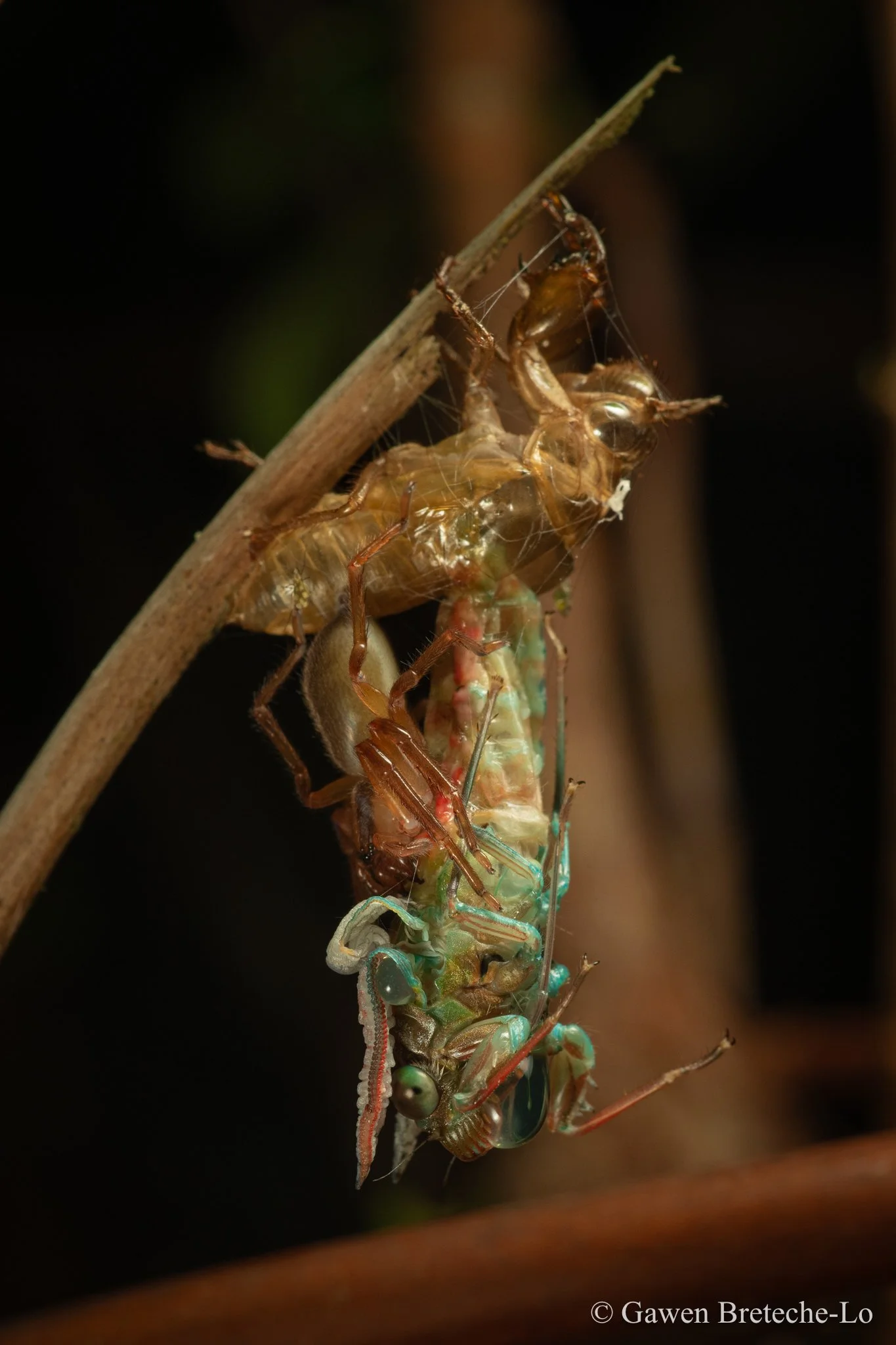 Spider eating freshly-moulted cicada, Sarawak, Borneo 2023